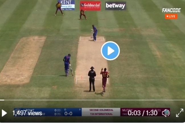 ओवेड मैकॉय ने मैच का पहला ओवर किया था, जिसमें उन्होंने पहली ही गेंद पर भारतीय कप्तान रोहित शर्मा को कैच आउट कराया। इसके बाद उन्होंने भारत को दूसरा झटका देते हुए सूर्यकुमार यादव को शिकार बना लिया।