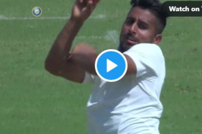 मैच के पहले दिन तूफानी गेंदबाज उमरान मलिक ने कहर मचाया। अपनी रफ्तार और स्विंग होती गेंदों से बल्लेबाजो को खूब छकाया। 5 ओवरों की गेंदबाजी में तीन विकेट लिए। चर्चा उमरान की एक यॉर्कर की हो रही है। तेज रफ्तार से गेंद फेंकने वाले उमरान मलिक की ये गेंद हवा में लहराई और ऑफ स्टंप ले उड़ी। उमरान मलिक इरानी ट्रॉफी में रेस्ट ऑफ इंडिया के लिए खेलते हुए अपने प्रदर्शन से गहरी छाप छोड़ी है।