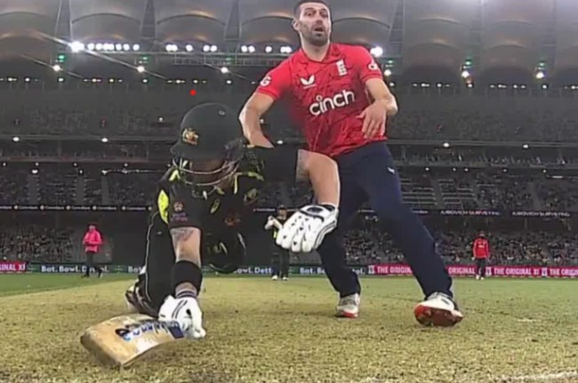 ऑस्ट्रेलिया के बल्लेबाज मैथ्यू वेड ने रविवार को इंग्लैंड के खिलाफ पर्थ के नए ऑप्टस स्टेडियम में मैदान में बाधा डालने के लिए दुर्लभ अंदाज में आउट हो सकते थे। यह घटना ऑस्ट्रेलिया पारी के 17वें ओवर में घटी। ऑस्ट्रेलिया को अंतिम 22 गेंदों में 39 रन और चाहिए थे, जिसमें वेड स्ट्राइक पर थे और दूसरे छोर पर डेविड वार्नर थे। गेंदबाज मार्क वुड एक छोटी गेंद पर वेड फंस गए। पुल शॉर्ट खेला और गेंद हवा में चली गई।