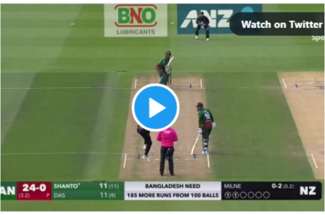 इस मुकाबले में कीवी गेंदबाज एडम मिल्ने की तूफानी गेंदबाजी देखने को मिली। उन्होंने 4 ओवर में 24 रन देकर 3 विकेट चटकाए। मिल्ने ने बांग्लादेश के ओपनर नजमुल होसेन शंटो को इस तरह बोल्ड किया कि बल्लेबाज के होश उड़ गए। लेफ्ट आर्म बल्लेबाज शंटो को ओवर द विकेट गेंद डालने आए मिल्ने ने जैसे ही चौथे ओवर की तीसरी गेंद डाली, ये बॉल टप्पा खाने के बाद इतनी खतरनाक इनस्विंग हुई कि मिडल स्टंप जड़ से उखड़कर गिर पड़ा।
