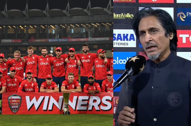 PAK vs ENG: पाकिस्तान और इंग्लैंड के बीच खेली गई 7 मैचों की टी 20 सीरीज के फाइनल मुकाबले में पाकिस्तान को 67 रनों से करारी हार का सामना करना पड़ा। इसी के साथ पाकिस्तान ये सीरीज 3-4 से हार गई। हालांकि इस हार के बावजूद पाकिस्तान क्रिकेट बोर्ड के अध्यक्ष रमीज राजा काफी खुश नज़र आए और उन्होंने इंग्लैंड की पूरी टीम का धन्यवाद भी किया।