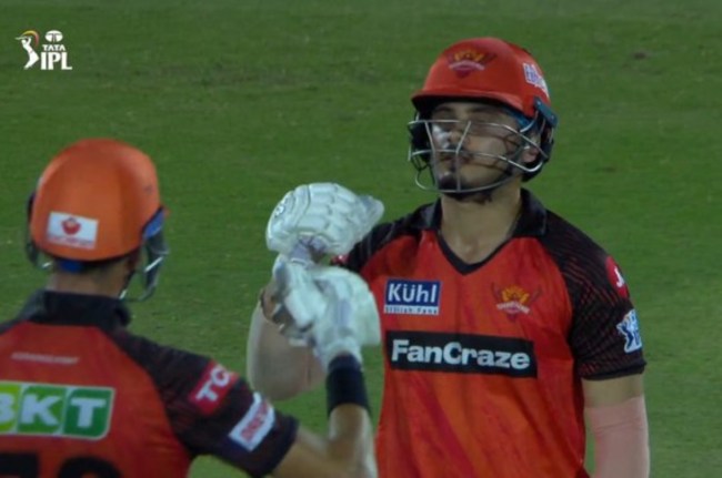 हैदराबाद को आखिरी बॉल पर 5 रन चाहिए थे, तभी संदीप शर्मा ने 20वें ओवर की आखिरी बॉल नो फेंक दी। ऐसे में अब्दुल समय कैच होने के बाद भी आउट नहीं हुए। यहां अंपायर ने नो बॉल का इशारा दिया। अब टीम को एक बॉल पर चार रन बनाने थे, समद ने छक्का मारकर मैच को खत्म कर दिया।