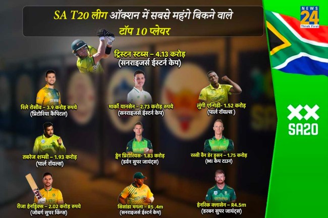 SA T20 Auction: рд╕рд╛рдЙрде рдЕрдлреНрд░реАрдХреА рдЯреА20 рд▓реАрдЧ рдХреЗ рд▓рд┐рдП рдЦрд┐рд▓рд╛рдбрд╝рд┐рдпреЛрдВ рдХрд╛ рдСрдХреНрд╢рди рдХрдВрдкрд▓реАрдЯ рд╣реЛ рдЧрдпрд╛ рд╣реИред рдмреАрддреЗ рд╕реЛрдорд╡рд╛рд░ рдХреЛ рд╣реБрдП рдЗрд╕ рдСрдХреНрд╢рди рдореЗрдВ рд╕рдмрд╕реЗ рдорд╣рдВрдЧреЗ рдЦрд┐рд▓рд╛рдбрд╝реА рд╕рд╛рдЙрде рдЕрдлреНрд░реАрдХрд╛ рдХреЗ рдЖрд▓рд░рд╛рдЙрдВрдбрд░ рдЯреНрд░рд┐рд╕реНрдЯрди рд╕реНрдЯрдмреНрд╕ рдмрдиреЗред рдЙрдиреНрд╣реЗрдВ рд╕рдирд░рд╛рдЗрдЬрд░реНрд╕ рдИрд╕реНрдЯрд░реНрди рдХреЗрдк рдиреЗ 92 рд▓рд╛рдЦ рд░реИрдВрдб (рд▓рдЧрднрдЧ 4.13 рдХрд░реЛрдбрд╝ рд░реБрдкрдпреЗ) рдореЗрдВ рдЦрд░реАрджрд╛ рд╣реИред рдЯреНрд░рд┐рд╕реНрдЯрди рд╕реНрдЯрдмреНрд╕ рдХреЛ рдЦрд░реАрджрдиреЗ рдХреЗ рд▓рд┐рдП рд╣рд░ рдЯреАрдо рдиреЗ рджрд┐рд▓рдЪрд╕реНрдкреА рджрд┐рдЦрд╛рдИред