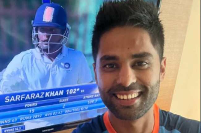 उनकी बेहतरीन पारी के दम पर रेस्ट ऑफ इंडिया ने मैच पर पकड़ मजबूत कर ली है। रेस्ट ऑफ इंडिया का स्कोर 3 विकेट पर 205 रन हो गए हैं। पहले बल्लेबाजी करते हुए सौराष्ट्र की टीम 98 पर ऑलआउट हो गई। सरफराज खान की इनिंग को देखकर मुंबई के एक और होनहार बल्लेबाज ने खुशी जाहिर की। साउथ अफ्रीका के साथ सीरीज खेल रहे सूर्यकुमार ने ट्वीटर पर टीवी के साथ अपनी एक तस्वीर पोस्ट की है। उस तस्वीर में सरफराज खान के शतक को सूर्या इंजॉय करते दिख रहे हैं। सूर्या ने फोटो शेयर करते हुए लिखा, तुमपर बहुत, बहुत गर्व है।