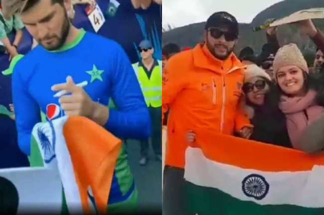 तस्वीरों में शाहीन एक फैन को भारतीय झंडे पर ऑटोग्राफ देते दिख रहे हैं। जैसे ही इसकी तस्वीर वायरल हुई, वैसे ही फैन्स को शाहिद अफरीदी की याद आ गई। आपको बता दें कि पाकिस्तान के पूर्व ऑलराउंडर शाहिद अफरीदी, शाहीन के ससुर हैं। कई सालों पहले अफरीदी का भी एक भारतीय फैंस के साथ तस्वीर वायरल हुई थी, जिसमें वो फैंस के साथ भारतीय तिरंगा पकड़े खड़े थे।