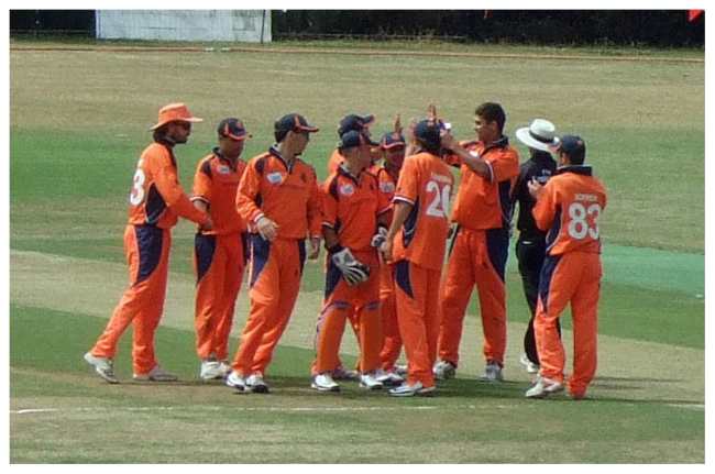 स्कॉट एडवर्ड्स (कप्तान और विकेटकीपर), कॉलिन एकरमैन, शारिज अहमद, लोगन वैन बीक, टॉम कूपर, ब्रैंडन ग्लोवर, टिम वैन डेर गुगटेन, फ्रेड क्लासेन, बास डी लीड, पॉल वैन मीकेरेन, रोएलोफ वैन डेर मेर्वे, स्टीफ़न मायबर्ग, तेजा निदामनुरु, मैक्स ओ’डॉड, टिम प्रिंगल, विक्रम सिंह।