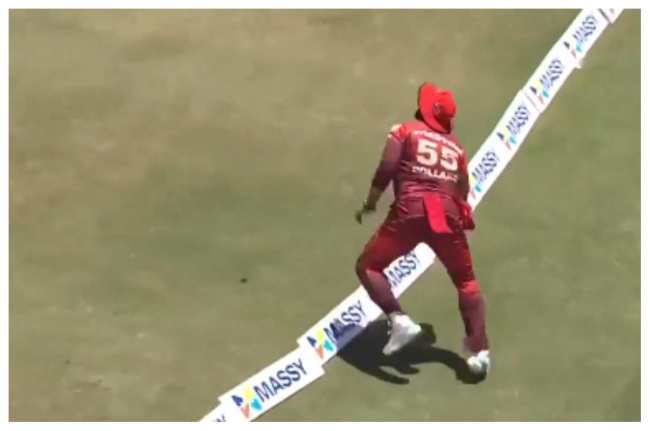 पोलार्ड जब उछले तो उनका संतुलन बिगड़ा और वो बाउंड्री पार चले गए। लेकिन इससे पहले उन्होंने गेंद को हवा में उछाल दिया और फिर उन्होंने बाउंड्री के अंदर आकर कैच लपक ली। ये सबकुछ एक सेकेंड के अंदर हुआ। पोलार्ड के इस कैच को जिसने देखा वो दंग रह गया।