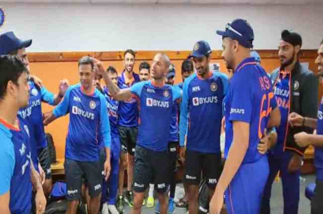 नई दिल्ली: टीम इंडिया ने वनडे में वेस्टइंडीजा को क्लीन स्वीप कर दिया। तीन मैचों की सीरीज में भारत ने 3-0 से कब्जा जमाया। मैच के बाद कोच राहुल द्रविड़ ने ड्रेसिंग रूम में खिलाड़ियों का हौसला बढ़ाया। धवन, जिन्हें वेस्टइंडीज के खिलाफ तीन एकदिवसीय मैचों के लिए नियमित कप्तान के रूप में भारत का कप्तान बनाया गया। रोहित शर्मा को आराम दिए जाने के बाद केएल राहुल कोरोना संक्रमित हो गए। ऐसे में शिखर धवन को कप्तान बनाया गया।