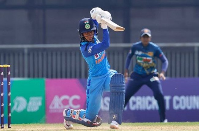 Women’s Asia Cup 2022: भारत और श्रीलंका के बीच खेले जा रहे वुमेंस एशिया कप (Women’s Asia Cup 2022) के पहले मुकाबले में भारतीय टीम की बल्लेबाज़ी समाप्त हो गई है। टीम ने श्रीलंका को 150 रनों का लक्ष्य दिया है। भारत ने पारी की शुरूआत में ही स्मृति मंदना और शैफाली वर्मा का विकेट गंवा दिया था जिसके बाद जेमिमा रोड्रिग्स ने तुफानी पारी खेलते हुए 76 रन बनाएं और भारत को इस लक्ष्य तक पहुंचाया।