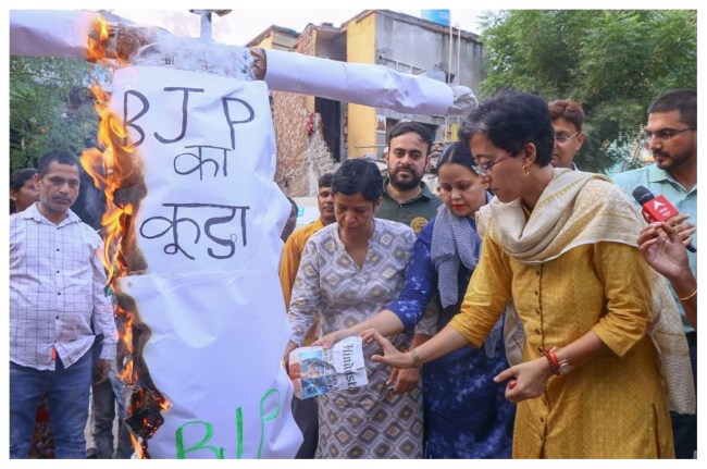 इसी के विरोध में आज हमने कूड़े का रावण जलाया है। यह विरोध एक जरिया है कि भाजपा कुंभकरण की नींद से जागे और समझे कि उन्होंने दिल्ली का क्या हाल कर दिया है। कालका जी से ‘आप’ विधायक आतिशी ने कहा कि भारतीय जनता पार्टी पिछले 15 सालों से एमसीडी में शासन कर रही है। उन्होंने पूरी दिल्ली को कूड़ा-कूड़ा कर दिया है। आप दिल्ली में घुसिए तो तीन बड़े-बड़े कूड़े के पहाड़ आपका स्वागत करते हैं। आए दिन उन पहाड़ों में आग लगती है। वहां पर इतने मच्छर हैं, पानी में कीड़े हैं, प्रदूषण है।