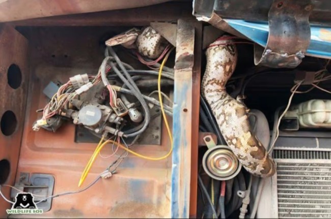 घटना शनिवार की है। आगरा के यमुनापार इलाका स्थित हाथरस मार्ग पर सड़क किनारे एक ट्रक खड़ा हुआ था। ट्रक के चालक राकेश ने कहीं जाने के लिए ट्रक का इंजन स्टार्ट किया, तो अजीब आवाज आई। राकेश चौंक गया। उसने नीचे उतर कर ट्रक को चेक किया, लेकिन कुछ दिखा नहीं। इसके उसने ट्रक के बोनट को खोला। बोनट के खुलते हुए उसके होश उड़ गए। जानकारी होने पर लोगों की भीड़ जमा हो गई। बोनट के अंदर काफी बड़ा अजगर फंसा हुआ था।
