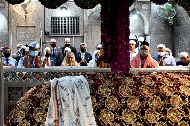 प्रधानमंत्री शेख हसीना ने गरीब नवाज ख्वाजा मोईनुद्दीन हसन चिश्ती की दरगाह में मखमल की चादर चढ़ाई और गुलाब के फूल चढ़ाए और दोनों देशों में अमन चैन और भाईचारे की दुआ की।