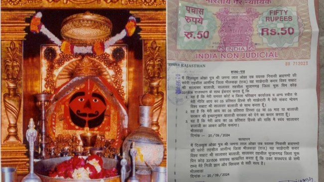 рд░рд╛рдЬрд╕реНрдерд╛рди рдХреЗ рджрд┐рд▓рдХреБрд╢ рдУрдЭрд╛ рдиреЗ рд╕рд╛рд▓рд╛рд╕рд░ рдмрд╛рд▓рд╛рдЬреА рдореЗрдВ рдХреБрдЫ рдРрд╕рд╛ рдХрд┐рдпрд╛, рдЬреЛ рдЪрд░реНрдЪрд╛ рдХрд╛ рд╡рд┐рд╖рдп рдмрди рдЧрдпрд╛ред рдирд┐рддрд┐рди рдкреБрдЬрд╛рд░реА рдХреА рдЙрдкрд╕реНрдерд┐рддрд┐ рдореЗрдВ рджрд┐рд▓рдХреБрд╢ рдУрдЭрд╛ рдЦреБрдж рд╣реА рдПрдХ рдПрдЧреНрд░реАрдореЗрдВрдЯ рд▓реЗрдХрд░ рдкрд╣реБрдВрдЪреЗ рдФрд░ рдЕрдкрдиреА рдЖрдп рдХрд╛ 5% рд╣рд┐рд╕реНрд╕рд╛ рджрд╛рди рдХрд░рдиреЗ рдХрд╛ рд╢рдкрде рдкрддреНрд░ рд╕реМрдВрдкрд╛ред рдУрдЭрд╛ рдХреА рдЗрд╕ рдкрд╣рд▓ рдиреЗ рдЙрдирдХреЗ рдЧрд╣рд░реЗ рдзрд╛рд░реНрдорд┐рдХ рд╡рд┐рд╢реНрд╡рд╛рд╕ рдФрд░ рд╕рдорд░реНрдкрдг рдХреЛ рд╕рд╛рдл рджрд░реНрд╢рд╛рдпрд╛ред