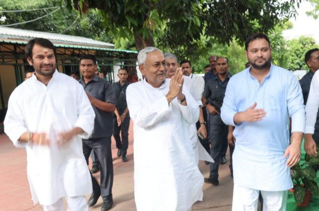 рдирдИ рджрд┐рд▓реНрд▓реА: рдмрд┐рд╣рд╛рд░ рдореЗрдВ рдкрд┐рдЫрд▓реЗ рдХрдИ рджрд┐рдиреЛрдВ рд╕реЗ рдЬрд╛рд░реА рд╕рд┐рдпрд╛рд╕реА рдШрдорд╛рд╕рд╛рди рдХреЗ рдмреАрдЪ рдиреАрддреАрд╢ рдХреБрдорд╛рд░ рдФрд░ рддреЗрдЬрд╕реНрд╡реА рдпрд╛рджрд╡ рдЖрдЬ рджреЛрдкрд╣рд░ рджреЛ рдмрдЬреЗ рдореБрдЦреНрдпрдордВрддреНрд░реА рдФрд░ рдЙрдкрдореБрдЦреНрдпрдордВрддреНрд░реА рдкрдж рдХреА рд╢рдкрде рд▓реЗрдВрдЧреЗред рдЬрд╛рдирдХрд╛рд░реА рдХреЗ рдореБрддрд╛рдмрд┐рдХ рджреЛрдкрд╣рд░ рджреЛ рдмрдЬреЗ рд░рд╛рдЬрднрд╡рди рдореЗрдВ рджреЛрдиреЛрдВ рдХреА рд╢рдкрде рд╣реЛрдЧреАред рдиреАрддреАрд╢ рдХреБрдорд╛рд░ рдХрд╛ рдпрд╣ рдореБрдЦреНтАНрдпрдордВрддреНрд░реА рдХреЗ рд░реВрдк рдореЗрдВ рдЖрдард╡реА рдмрд╛рд░ рд╢рдкрде рдЧреНрд░рд╣рдг рд╣реЛрдЧрд╛ред рдХреИрдмрд┐рдиреЗрдЯ рдХреЗ рдЕрдиреНрдп рдордВрддреНрд░рд┐рдпреЛрдВ рдХреЗ рдирд╛рдо рдЬрд▓реНрдж рд╣реА рд╕рд╛рдордиреЗ рдЖрдПрдВрдЧреЗред рд╕рдорд░реНрдерди рджреЗрдиреЗ рд╡рд╛рд▓реА рд╕рднреА рдкрд╛рд░реНрдЯрд┐рдпреЛрдВ рдХреЛ рдХреИрдмрд┐рдиреЗрдЯ рдореЗрдВ рдЬрдЧрд╣ рджреА рдЬрд╛рдПрдЧреАред