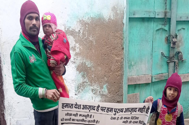 अजय कुमार सिंह, कैमूर : यह मामला बिहार के कैमूर का है, जहां पत्नी की बेवफाई ने एक पति को घुट-घुट कर मरने के लिए विवश कर दिया है। आलम यह है कि पति अपने दो मासूम बच्चों के साथ इस कड़ाके की ठंड में भीख मांगने को विवश हैं, वह अपने चार साल के बेटे अंश व छह माह की बेटी कृति को गोद में लेकर पूरे बाजार में घूम कर भीख मांग रहा है। इस दौरान वह अपनी पत्नी की गुमशुदगी का पोस्टर भी लेकर घूम रहा है।