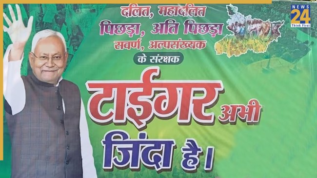 Bihar Elections: बिहार विधानसभा चुनाव के नतीजे अब सामने आने लगे हैं, चुनाव आयोग ने 243 सीटों पर मतगणना शुरू कर दी है. अब तक सामने आए पोस्टर बैलेट के रुझानों में एनडीए ने बढ़त बना ली है. इस बीच चुनावी नतीजे आने से पहले ही जेडीयू और आरजेडी के बीच पोस्टर वार शुरू हो गया है. एक तरफ जहां जेडीयू ने अपने कार्यालय पर ‘टाइगर अभी जिंदा है’ का पोस्टर लगाया वहीं, दूसरी ओर जेडीयू ने ‘अलविदा चाचा’ का पोस्टर लगाया. सोशल मीडिया पर भी दोनों पार्टियों के पोस्टर की तस्वीर वायरल हो रही है.