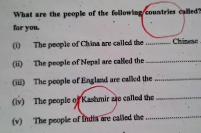 Kishanganj, Bihar | Class 7 question paper terms Kashmir as separate country