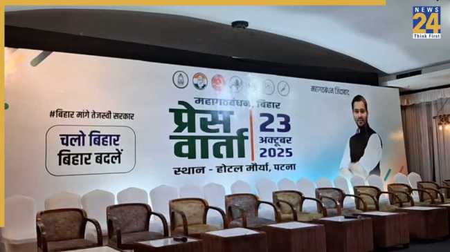 Bihar Election 2025: बिहार चुनाव में महागठबंधन में अपना सीएम फेस तय कर लिया है। सूत्रों ने पहले ही बताया था कि बिहार चुनाव के लिए महागठबंधन आरजेडी नेता तेजस्वी यादव को सीएम फेस बनाने जा रही है। अब महागठबंधन ने इसके संकेत भी दे दिए हैं। आज पटना में महागठबंधन की प्रेस कॉन्फ्रेंस होनी है। इसके लिए महागठबंधन ने तैयारियां पूरी कर ली हैं। प्रेस वार्ता के लिए महागठबंधन का पोस्टर लग गया है। इसमें तेजस्वी यादव की बड़ी फोटो है। इससे साफ हो गया है कि महागठबंधन तेजस्वी यादव को सीएम फेस बनाने पर राजी हो गया है। बस प्रेस वार्ता में इसका आधिकारिक ऐलान होना बाकी है।