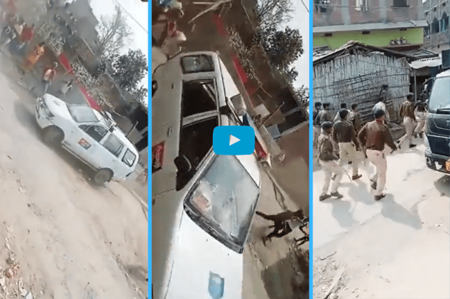 ग्रामीणों ने पुलिस वैन में तोड़फोड़ की। वीडियो में साफ देखा जा सकता है कि ड्राइवर कभी गाड़ी बैक कर रहा है तो आगे ले जा रहा है। भीड़ गाड़ी पर हमला करते हुए दिख रही है।