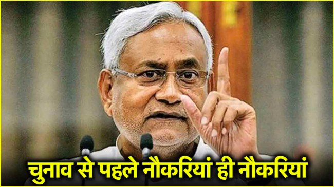 बिहार के युवाओं और कॉन्ट्रैक्ट पर नौकरी कर रहे लोगों के लिए खुशखबरी है। बिहार में विधानसभा चुनाव 2025 सिर पर हैं। चुनाव से पहले प्रदेश के मुख्यमंत्री नीतीश कुमार प्रदेशवासियों को बड़ा तोहफा दे सकते हैं। जी हां, विधानसभा चुनाव से ठीक पहले बिहार में 2.75 लाख नौकरियां निकलेंगी। चुनाव से पहले नीतीश कुमार सालों से कॉन्ट्रैक्ट पर काम कर रहे कर्मचारियों को पक्का करके सरकारी विभागों में खाली पद भर सकते हैं।
