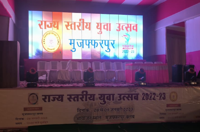 राज्यस्तरीय युवा उत्सव में आने वाले पदाधिकारियों, निर्णायक मंडल एवं प्रतिभागियों के आवासन एवं निबंधन उनके आवासन पर किया जा रहा है। उद्घाटन के साथ ही प्रतिभागियों के निबंधन का कार्यक्रम दिनांक 08.01.2023 को 10:00 बजे पूर्वाह्न से किया जाएगा। आवासन स्थल के रूप में महिला शिल्प कला महाविद्यालय, मुखर्जी सेमीनरी विद्यालय, जिला स्कूल, द्वारिका नाथ उच्च विद्यालय एवं बी0बी0 कॉलेजिएट स्कूल को बनाया गया है । साथ ही कार्यक्रम स्थल के रूप में क्लब मैदान मुजफ्फरपुर जिला परिषद सभागार, नगर भवन हॉल, जुब्बा सहनी आम्रपाली आडिटोरियम, एम0आई0टी0 आडिटोरियम, मुजफ्फरपुर में किया जाना है। आवासन स्थल का साफ-सफाई, रंग-रोगन, मरम्मती, शौचालय की साफ-सफाई एवं पानी की आपूर्ति हेतु समुचित व्यवस्था की गई है ।