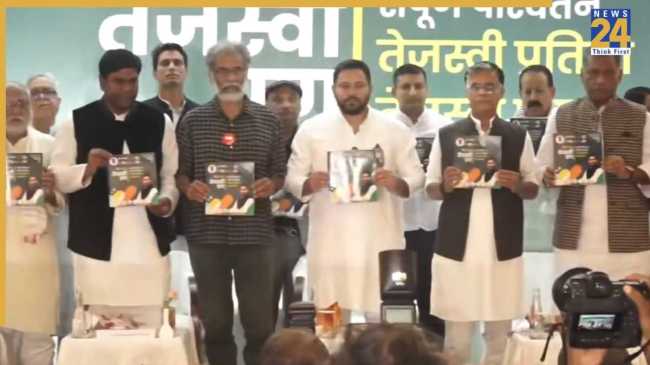 इस दौरान राजद नेता और मुख्यमंत्री फेस तेजस्वी यादव ने कहा कि हमें सिर्फ सरकार नहीं बनानी है बल्कि बिहार को भी बनाना है. बहुत खुशी की बात है कि हम INDIA के लोग साझा रूप से आपके सामने संकल्प पत्र लेकर आए हैं. ये हम लोगों का प्रण है कि कैसे हम बिहार को नंबर एक बनाएं. एक-एक घोषणा दिल से लिया गया प्रण है.
