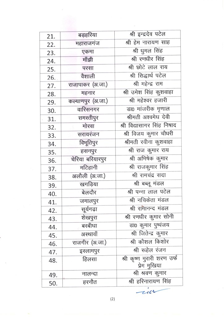मधेपुरा से निखिल मंडल, दरभंगा ग्रामीण से फराज फातमी, मीनापुर से अजय कुमार, गयाघाट से महेश्वर प्रसाद यादव, एकमा से सीता देवी, परसा से चंद्रिका राय, जमालपुर से शैलेश कुमार, खगड़िया से पूनम देवी, फुलवारी से अरुण मांझी और अलौली से रामवृक्ष सदा का टिकट कटा है.