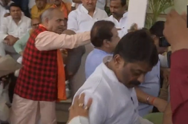 #WATCH | Bihar: RJD & BJP MLAs enter into a scuffle at the state assembly after am RJD MLA offered the BJP MLAs sweets following the bail to Lalu Yadav, Rabri Devi, Misa Bharati in land-for-job case.