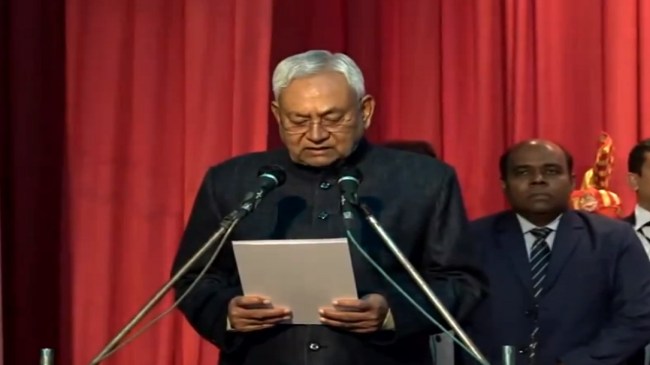 पटना के राज्यभवन में शपथ ग्रहण समारोह का आयोजन हुआ। राज्यपाल राजेंद्र आर्लेकर ने नीतीश कुमार को मुख्यमंत्री पद की शपथ दिलाई। भाजपा के नेतृत्व वाले एनडीए गठबंधन में शामिल होने के बाद नीतीश कुमार ने 9वीं बार सीएम के रूप में शपथ ली। साथ ही भारतीय जनता पार्टी (BJP) की ओर से दो उपमुख्यमंत्री बनाए गए।