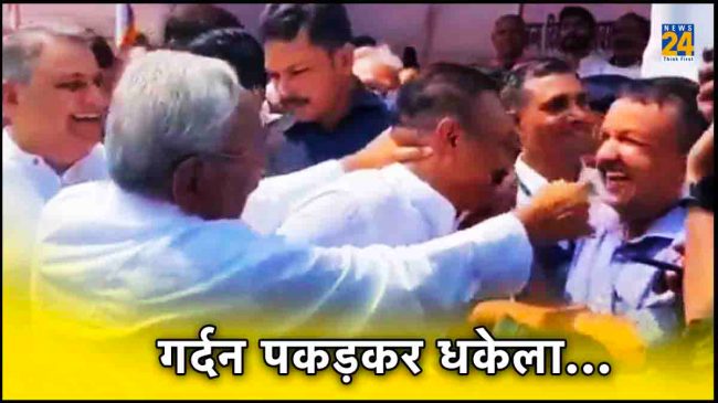 Nitish Kumar Grabbed Minister Ashok Chaudhary neck Video Viral: बिहार के मुख्यमंत्री नीतीश कुमार का अंदाज-ए-बयां अक्सर चर्चा का विषय बनता है। जब I.N.D.I.A ब्लॉक कुछ पत्रकारों/एंकर्स के बहिष्कार पर उतर आया तो नीतीश कुमार पत्रकारों के साथ नजर आए। दरअसल, मॉरीशस के पहले प्रधानमंत्री स्वर्गीय शिवसागर राम गुलाम की सोमवार को जयंती है। श्रद्धांजलि देने के बाद वे पत्रकारों से मुखातिब हुए। पत्रकार कुछ पूछ भी पाते, उससे पहले उनकी नजर एक खबरनवीस पर पड़ी, वह माथे पर टीका लगाए हुए थे। इसके बाद नीतीश कुमार कैबिनेट मंत्री अशोक चौधरी को ढूंढने लगे। पीछे खड़ा देख नीतीश ने हाथ बढ़ाया और मंत्री अशोक की गर्दन पकड़ ली। यह देख लोग हंसने लगे।