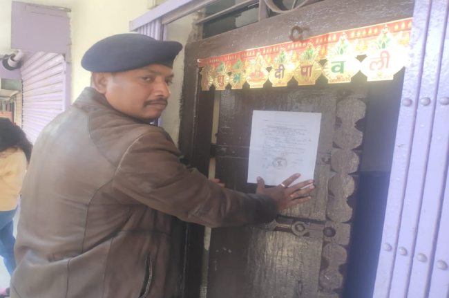 घर के बाहर पुलिस ने चिपकाया नोटिस