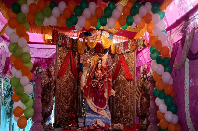 सरस्वती पंडाल पर गणतंत्र दिवस की दिखी छाप