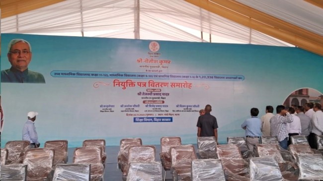 गौरतलब है कि पटना, वैशाली और नालंदा के नवनियुक्त शिक्षकों को 2 नवंबर को पटना के गांधी मैदान में मुख्यमंत्री नीतीश कुमार नियुक्ति पत्र देंगे। कुल 1 लाख 20 हजार 336 नवनियुक्त शिक्षकों को उनके नियुक्ति वाले जिले में नियुक्ति पत्र सोपा जाएगा।