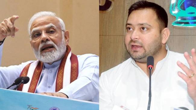 Tejashwi Yadav questions to PM Modi: рд▓реЛрдХрд╕рднрд╛ рдЪреБрдирд╛рд╡ рдХреЗ рдорджреНрджреЗрдирдЬрд░ рдмрд┐рд╣рд╛рд░ рдореЗрдВ рдЪреБрдирд╛рд╡реА рдкрд╛рд░рд╛ рдлрд┐рд░ рд╕реЗ рдЪрдврд╝рдиреЗ рд╡рд╛рд▓рд╛ рд╣реИред рджреВрд╕рд░реЗ рдЪрд░рдг рдХреА рд╡реЛрдЯрд┐рдВрдЧ рдореЗрдВ рдЬрд╣рд╛рдВ рдЖрдЬ рдмрд┐рд╣рд╛рд░ рдХреА 5 рд╕реАрдЯреЛрдВ рдкрд░ рдорддрджрд╛рди рд╣реЛ рд░рд╣реЗ рд╣реИрдВ рддреЛ рд╡рд╣реАрдВ рдкреНрд░рдзрд╛рдирдордВрддреНрд░реА рдореЛрджреА рдПрдХ рдмрд╛рд░ рдлрд┐рд░ рд╕реЗ рдмрд┐рд╣рд╛рд░ рдореЗрдВ рдЪреБрдирд╛рд╡реА рд░реИрд▓реА рдХреЛ рд╕рдВрдмреЛрдзрд┐рдд рдХрд░рдиреЗ рдЬрд╛ рд░рд╣реЗ рд╣реИрдВред рд╣рд╛рд▓рд╛рдВрдХрд┐ рдмрд┐рд╣рд╛рд░ рдореЗрдВ рдкреАрдПрдо рдореЛрджреА рдХреА рдПрдВрдЯреНрд░реА рд╕реЗ рдкрд╣рд▓реЗ рдЖрд░рдЬреЗрдбреА рдиреЗрддрд╛ рддреЗрдЬрд╕реНрд╡реА рдпрд╛рджрд╡ рдиреЗ рд╕рд╡рд╛рд▓реЛрдВ рдХреЗ рддреАрд░ рдЪрд▓рд╛рдиреЗ рд╢реБрд░реВ рдХрд░ рджрд┐рдП рд╣реИрдВред