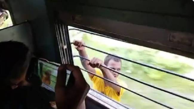 Thief Hangs Speeding Train Window Shocking Video viral: तेज रफ्तार से चल रही एक ट्रेन की खिड़की से चोर के लटकने का वीडियो सामने आया है। वीडियो में दिख रहा है कि खिड़की से लटका चोर मदद की आवाज लगा रहा है और रो रहा है। पूरे मामले का वीडियो सोशल मीडिया पर वायरल है। घटना बिहार के बेगुसराय इलाके की बताई जा रही है।