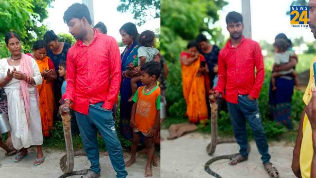 рдЗрдВрдбреЛ рдиреЗрдкрд╛рд▓ рд╕реАрдорд╛ рдЕрдВрддрд░реНрдЧрдд рд╡рд╛рд▓реНрдореАрдХреА рдирдЧрд░ рдХреЗ рдмрд┐рд╕рд╛рд╣рд╛ рдЧрд╛рдВрд╡ рдореЗрдВ рдПрдХ рдШрд░ рдореЗрдВ рддрдХрд░реАрдмрди 12 рдлреАрдЯ рд▓рдВрдмрд╛ рдХрд┐рдВрдЧ рдХреЛрдмрд░рд╛ рдШреБрд╕ рд░рд╣рд╛ рдерд╛ред рдмрддрд╛рдпрд╛ рдЬрд╛ рд░рд╣рд╛ рд╣реИ рдХрд┐ рджреБрдирд┐рдпрд╛ рдХреЗ рд╕рдмрд╕реЗ рдЬрд╣рд░реАрд▓реЗ рдХрд┐рдВрдЧ рдХреЛрдмрд░рд╛ рд╕рд╛рдВрдк рдХреЛ рдпреБрд╡рдХ рдиреЗ рджреМрдбрд╝рдХрд░ рдкрдХрдбрд╝ рд▓рд┐рдпрд╛ред рд╡рд╛рдпрд░рд▓ рддрд╕реНрд╡реАрд░ рдореЗрдВ рд╕рд╛рдл-рд╕рд╛рдл рджрд┐рдЦ рд░рд╣рд╛ рд╣реИ рдХрд┐ рдпреБрд╡рдХ рд╡ рдорд╣рд┐рд▓рд╛ рдиреЗ рдЬрд╣рд░реАрд▓реЗ рдХрд┐рдВрдЧ рдХреЛрдмрд░рд╛ рдХреЗ рдлрди рдХреЛ рджрдмреЛрдЪрд╛ рд╣реБрдЖ рд╣реИ рдЗрддрдирд╛ рд╣реА рдирд╣реАрдВ рдорд╣рд┐рд▓рд╛, рдХрд┐рдВрдЧ рдХрд╛ рджрд╛рдВрдд рднреА рддреЛреЬрддреА рдиреЫрд░ рдЖ рд░рд╣реА рд╣реИред