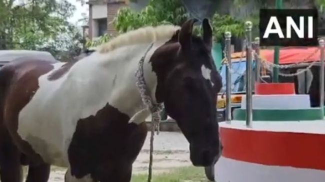 #WATCH | Bettiah, Bihar: In the West Champaran district of Bihar, the police have seized a horse that was being used to smuggle liquor and recovered about 50 litres of alcohol loaded on the horse.