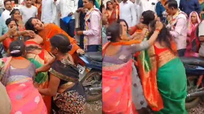 jalaun BJP women Workers fighting on road: рджреЗрд╢ рдореЗрдВ рдЬреИрд╕реЗ-рдЬреИрд╕реЗ рд▓реЛрдХрд╕рднрд╛ рдЪреБрдирд╛рд╡ рдХреА рддрд╛рд░реАрдЦ рдирдЬрджреАрдХ рдЖ рд░рд╣реА рд╣реИ, рд╡реИрд╕реЗ рд╡реИрд╕реЗ рдпреВрдкреА рдХреА рд░рд╛рдЬрдиреАрддрд┐ рднреА рд╕рдХреНрд░рд┐рдп рд╣реЛрддреА рджрд┐рдЦ рд░рд╣реА рд╣реИред рдпреВрдкреА рднрд╛рдЬрдкрд╛ рдиреЗрддрд╛рдУрдВ рдХреА рдУрд░ рд╕реЗ рддреЗрдЬреА рд╕реЗ рдмрдврд╝ рд░рд╣реЗ рджреМрд░реЛрдВ рдХреЗ рдмреАрдЪ рдпреВрдкреА рдХреА рд╕рд┐рдпрд╛рд╕реА рд╣рд▓рдЪрд▓ рд╕реЗ рдЬреБрдбрд╝реЗ рдорд╛рдорд▓реЛрдВ рдХрд╛ рд╡реАрдбрд┐рдпреЛ рднреА рд╡рд╛рдпрд░рд▓ рд╣реЛрдирд╛ рд╢реБрд░реВ рд╣реЛ рдЧрдпрд╛ рд╣реИред рдРрд╕рд╛ рд╣реА рдПрдХ рдХрд┐рд╕реНрд╕рд╛ рдпреВрдкреА рдХреЗ рдЬрд╛рд▓реМрди рдореЗрдВ рджреЗрдЦрдиреЗ рдХреЛ рдорд┐рд▓рд╛, рдЬрд┐рд╕рдХрд╛ рд╡реАрдбрд┐рдпреЛ рд╕реЛрд╢рд▓ рдореАрдбрд┐рдпрд╛ рдкрд░ рдЬрдордХрд░ рд╡рд╛рдпрд░рд▓ рд╣реЛ рд░рд╣рд╛ рд╣реИред рд╡рд╛рдпрд░рд▓ рд╡реАрдбрд┐рдпреЛ рдЬрд╛рд▓реМрди рдХреЗ рдХрд╛рд▓рдкреА рдХрд╛ рдмрддрд╛рдпрд╛ рдЬрд╛ рд░рд╣рд╛ рд╣реИ, рдЬрд╣рд╛рдВ рдЖрдпреЛрдЬрд┐рдд рдорд╣рд┐рд▓рд╛ рд╢рдХреНрддрд┐ рдХрд╛рд░реНрдпрдХреНрд░рдо рдХреЗ рдмреАрдЪ рднрд╛рдЬрдкрд╛ рдХреА рдорд╣рд┐рд▓рд╛ рдХрд╛рд░реНрдпрдХрд░реНрддрд╛ рдЖрдкрд╕ рдореЗрдВ рд╣реА рднрд┐реЬ рдЧрдИрдВред рдЗрд╕реА рджреМрд░рд╛рди рдкрд╛рд╕ рдореЗрдВ рдЦрдбрд╝реЗ рдХрд┐рд╕реА рд╡реНрдпрдХреНрддрд┐ рдиреЗ рдЗрд╕рдХрд╛ рд╡реАрдбрд┐рдпреЛ рдмрдирд╛рдХрд░ рд╕реЛрд╢рд▓ рдореАрдбрд┐рдпрд╛ рдкрд░ рд╡рд╛рдпрд░рд▓ рдХрд░ рджрд┐рдпрд╛, рдЬрд┐рд╕рдХрд░ рд▓реЛрдЧ рддрд░рд╣ рддрд░рд╣ рдХреА рдкреНрд░рддрд┐рдХреНрд░рд┐рдпрд╛рдПрдВ рджреЗ рд░рд╣реЗ рд╣реИрдВред