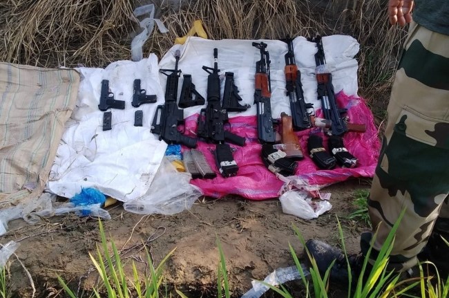 BSF recovered a cache of assault weapons at India-Pakistan border in Punjab. 3 AK47 rifles with 6 magazines,3 M3 Rifles with 4 magazines & 2 pistols with 2 magazines in Ferozepur sector earlier today. It appears that weapons have been smuggled from Pakistan: Border Security Force https://t.co/M7fjzH4yxq pic.twitter.com/V1LgDlUp9d