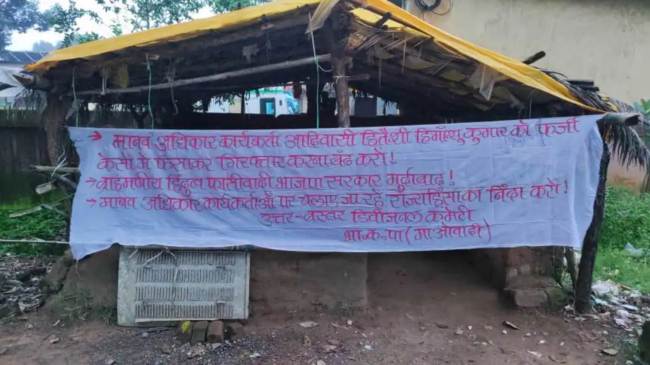 भानुप्रतापपुर: छत्तीसगढ़ के कांकेर जिले के धुर नक्सल क्षेत्र कोयलीबेड़ा में मुख्य बाजार में नक्सलियों ने बैनर लगाकर मानवाधिकार कार्यकर्ता के खिलाफ कार्रवाई का विरोध किया है। इसके साथ ही सुरक्षा बलों द्वारा किए जा रहे अत्याचार का विरोध करने की आम जनता से अपील की है।