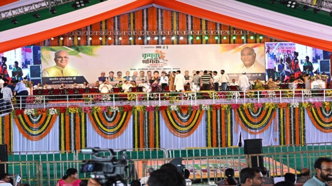 रायपुर: सीएम भूपेश बघेल एवं राज्यसभा में नेता प्रतिपक्ष मल्लिकार्जुन खड़गे के मुख्य आतिथ्य में कृषकों और श्रमिकों को न्याय योजनाओं एवं श्रमिक योजनाओं की राशि का वितरण किया गया। इस अवसर पर बलौदाबाजार-भाटापारा जिले में 266 करोड़ रुपए के 264 विकास कार्यों का भूमिपूजन एवं लोकार्पण किया गया। इसके अंतर्गत 176 करोड़ रुपए के 150 कार्यों का लोकार्पण एवं 90 करोड़ रुपए की राशि के 114 विकास कार्यों का भूमिपूजन शामिल है।