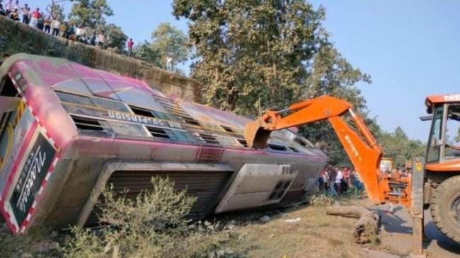 Bilaspur Kenda Valley Bus Accident: छत्तीसगढ़ के बिलासपुर में एक बड़ा सड़क हादसा हो गया है, जहां एक यात्रियों से भरी बस केंदा घाटी में गिरने से दो लोगों की मौत हो गई है वहीं, 40 लोग घायल हुए हैं। बताया जा रहा है कि बस बिलासपुर से प्रयागराज जा रही थी। घटना की सूचना मिलते ही मौके पर पहुंची पुलिस ने एंबुलेंस की सहायता से सभी घायलों को अस्पताल पहुंचाया।