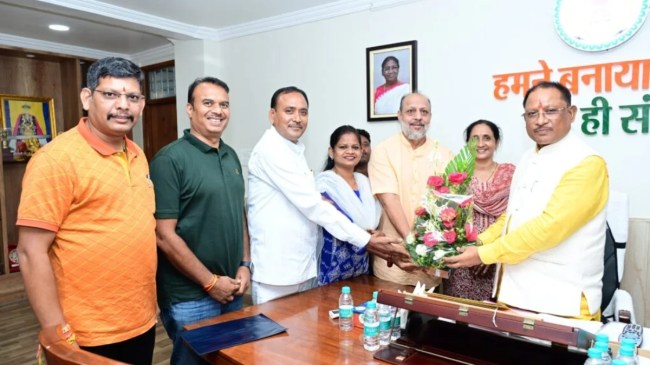 Krida Bharati Delegation: рдХреНрд░реАрдбрд╝рд╛ рднрд╛рд░рддреА рдХреЗ рдкреНрд░рддрд┐рдирд┐рдзрд┐рдордВрдбрд▓ рдиреЗ рдореБрдЦреНрдпрдордВрддреНрд░реА рд╡рд┐рд╖реНрдгреБрджреЗрд╡ рд╕рд╛рдп рд╕реЗ рд╕реМрдЬрдиреНрдп рдореБрд▓рд╛рдХрд╛рдд рдХреАред рдЗрд╕ рджреМрд░рд╛рди рдЫрддреАрд╕рдЧрдврд╝ рдХреЗ рдЦрд┐рд▓рд╛рдбрд╝рд┐рдпреЛрдВ рдХреЛ рдЕрд▓рдВрдХрд░рдг рдкреНрд░рджрд╛рди рдХрд░рдиреЗ рдХреЗ рд╕рд╛рде рд╢реНрд░реЗрд╖реНрда рдЦрд┐рд▓рд╛рдбрд╝рд┐рдпреЛрдВ рдХреЗ рдЪрдпрди рдХреЗ рд▓рд┐рдП рд╕рдорд┐рддрд┐ рдЧрдард┐рдд рдХрд┐рдП рдЬрд╛рдиреЗ рдкрд░ рдЖрднрд╛рд░ рдЬрддрд╛рдпрд╛ред рдореБрд▓рд╛рдХрд╛рдд рдХреЗ рджреМрд░рд╛рди рдЫрддреАрд╕рдЧрдврд╝ рдореЗрдВ рдЦреЗрд▓ рд╕рдВрд╕реНрдХреГрддрд┐ рдХреЛ рдЖрдЧреЗ рдмрдврд╝рд╛рдиреЗ рдХреЗ рд▓рд┐рдП рд░рд╛рдЬреНрдп рдЦреЗрд▓ рдорд╣реЛрддреНрд╕рд╡ рдЖрдпреЛрдЬрд┐рдд рдХрд░рдиреЗ рдХрд╛ рдЖрдЧреНрд░рд╣ рдХрд┐рдпрд╛ред рдкреНрд░рддрд┐рдирд┐рдзрд┐ рдордВрдбрд▓ рдореЗрдВ рдЫрддреАрд╕рдЧрдврд╝ рдкреНрд░рд╛рдВрдд рдХреЗ рдЕрдзреНрдпрдХреНрд╖ рд╕рдВрдЬрдп рд╢рд░реНрдорд╛, рдкреНрд░рд╛рдВрдд рдордВрддреНрд░реА рд╕реБрдорд┐рдд рдЙрдкрд╛рдзреНрдпрд╛рдп, рдкреНрд░рд╛рдВрдд рдЙрдкрд╛рдзреНрдпрдХреНрд╖ рдиреАрддрд╛ рдбреБрдорд░реЗ, рд╣рд░реНрд╖рд╛ рд╕рд╛рд╣реВ, рдЫрдЧрди рд╕реЛрдирд╡рд╛рдиреА, рд╕реМрд░рд╡ рд╕реЛрдиреА рдФрд░ рд╕рддреАрд╢ рдпрд╛рджрд╡ рдореМрдЬреВрдж рд░рд╣реЗред рдордВрдбрд▓ рдиреЗ рдЦреЗрд▓ рдордВрддреНрд░реА рдЯрдВрдХрд░рд╛рдо рдХреЗ рдкреНрд░рддрд┐ рднреА рдЖрднрд╛рд░ рд╡реНрдпрдХреНрдд рдХрд┐рдпрд╛ред рд╕рд░рдХрд╛рд░ рдиреЗ рдЦрд┐рд▓рд╛рдбрд╝рд┐рдпреЛрдВ рдХреЗ рд╣рд┐рдд рдореЗрдВ рд▓рд┐рдП рдЧрдП рдлреИрд╕рд▓реЛрдВ рдХреЗ рд▓рд┐рдП рдЖрднрд╛рд░ рдЬрддрд╛рдпрд╛ред