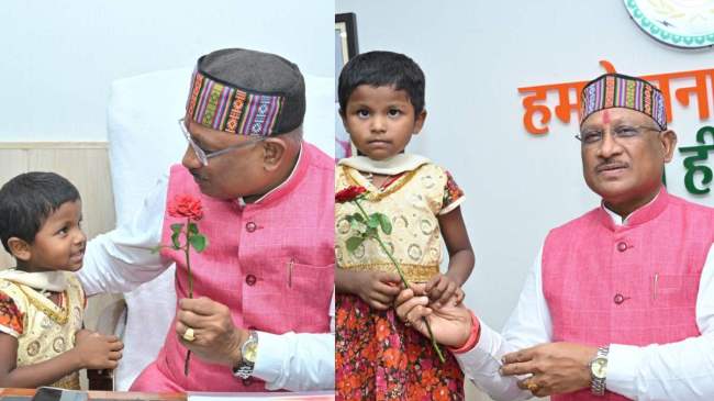 CM Vishnudev Sai Jandarshan Program: छत्तीसगढ़ के मुख्यमंत्री विष्णुदेव साय अपने संवेदनशीलता प्रदेश की जनता के बीच काफी पसंद किए जाते हैं। प्रदेश की जनता को करीब से जानने के लिए मुख्यमंत्री विष्णुदेव साय ने जनदर्शन कार्यक्रम शुरूआत की है। इस कार्यक्रम के तहत सीएम साय हर गुरुवार को मुख्यमंत्री अवास पर प्रदेश के लोगों से मिलते हैं और उनकी परेशानियों को सुन कर उसका समाधान करते हैं। आज के जनदर्शन कार्यक्रम में सीएम साय से मिलने के लिए 5 साल नूतन ठाकुर पहुंची। नूतन ठाकुर ने सीएम साय को गुलाब का फूल देकर इलाज उसकी सहायता करने के लिए धन्यवाद किया है।