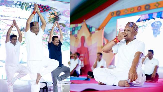 Chhattisgarh CM Vishnudev Sai on International Yoga Day: рдЫрддреНрддреАрд╕рдЧрдврд╝ рдХреЗ рдореБрдЦреНрдпрдордВрддреНрд░реА рд╡рд┐рд╖реНрдгреБрджреЗрд╡ рд╕рд╛рдп рд╢реБрдХреНрд░рд╡рд╛рд░ рдХреЛ ‘рдЕрдВрддрд░рд░рд╛рд╖реНрдЯреНрд░реАрдп рдпреЛрдЧ рджрд┐рд╡рд╕’ рдХреЗ рдореМрдХреЗ рдкрд░ рд░рд╛рдЬрдзрд╛рдиреА рд░рд╛рдпрдкреБрд░ рдХреЗ рд╕рд╛рдЗрдВрд╕ рдХреЙрд▓реЗрдЬ рдореЗрдВ рдЖрдпреЛрдЬрд┐рдд рд╕рд╛рдореВрд╣рд┐рдХ рдпреЛрдЧрд╛рднреНрдпрд╛рд╕ рдХрд╛рд░реНрдпрдХреНрд░рдо рдореЗрдВ рд╢рд╛рдорд┐рд▓ рд╣реБрдПред рдЗрд╕ рдХрд╛рд░реНрдпрдХреНрд░рдо рдореЗрдВ рд╕реАрдПрдо рд╡рд┐рд╖реНрдгреБрджреЗрд╡ рд╕рд╛рдп рдиреЗ рд╣рдЬрд╛рд░реЛрдВ рд▓реЛрдЧреЛрдВ рдХреЗ рд╕рд╛рде рдпреЛрдЧ рдФрд░ рдкреНрд░рд╛рдгрд╛рдпрд╛рдо рдХрд┐рдпрд╛ред рдЗрд╕ рдХрд╛рд░реНрдпрдХреНрд░рдо рдХреЗ рджреМрд░рд╛рди рд╕реАрдПрдо рд╕рд╛рдп рдиреЗ рдкреНрд░рджреЗрд╢ рдХреА рдЬрдирддрд╛ рдХреЛ рд╕рдВрдмреЛрдзрд┐рдд рдХрд░рддреЗ рд╣реБрдП рдХрд╣рд╛ рдХрд┐ рд╕реНрд╡рд╕реНрде рдЬреАрд╡рдирд╢реИрд▓реА рдХреЗ рд▓рд┐рдП рдирд┐рдпрдорд┐рдд рдпреЛрдЧрд╛рднреНрдпрд╛рд╕ рдХрд░рдирд╛ рдмрд╣реБрдд рдЬрд░реВрд░реА рд╣реИред рдЗрд╕рдХреЗ рд╕рд╛рде рд╣реА рд╕реАрдПрдо рд╕рд╛рдп рдиреЗ рдХрд╣рд╛ рдпреЛрдЧ рд╕рд┐рд░реНрдл рд╕реНрд╡рд╕реНрде рдЬреАрд╡рди рдХреЗ рд▓рд┐рдП рд╣реА рдирд╣реАрдВ, рд╕реНрд╡рд╕реНрде рд╕рдорд╛рдЬ рдХреЗ рдирд┐рд░реНрдорд╛рдг рдХреЗ рд▓рд┐рдП рднреА рдмрд╣реБрдд рдЬрд░реВрд░реА рд╣реИред