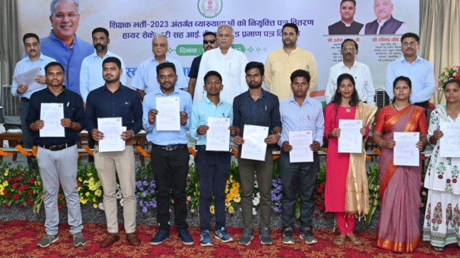 मुख्यमंत्री श्री @bhupeshbaghel ने शिक्षक भर्ती – 2023 के व्याख्याताओं को दिये नियुक्ति पत्र।