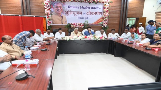 सीएम बघेल द्वारा लोकार्पित कार्यों में विकासखण्ड धमधा अंतर्गत ग्राम करहीडीह में 52 लाख 56 हजार रुपए लागत के सोलर आधारित नलजल योजना, ग्राम ओटेबंद में 70 लाख 54 हजार रुपए लागत के रेट्रोफिटिंग नलजल योजना, ग्राम करगा में 33 लाख 31 हजार रुपए लागत के रेट्रोफिटिंग नलजल योजना, ग्राम भैंसबोड़ में 73 लाख 73 हजार रुपए लागत के सिंगल विलेज नलजल योजना, इसी प्रकार नगर पालिक निगम दुर्ग अंतर्गत 16 करोड़ 26 लाख रुपए लागत से ठगड़ा बांध सौंदर्यीकरण, 49 लाख 45 हजार रुपए लागत के सी मार्ट तथा अन्य नवनिर्मित सभागृह शामिल हैं।
