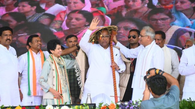 मुख्य अतिथि मल्लिकार्जुन खड़गे ने सम्मेलन को संबोधित करते हुए कहा कि आजादी के बाद से हमारी सरकार ने एम्स बनाया, स्कूल, कॉलेज, यूनिवर्सिटी खोली। बड़े बड़े कारखाने, टेक्सटाइल यूनिट बनाए, औद्योगीकरण को बढ़ावा दिया। देश को आगे बढ़ाने का काम किया। पंडित जवाहर लाल नेहरू और सरदार वल्लभ भाई पटेल ने पब्लिक सेक्टर को मजबूती देने का काम किया। भांगड़ा नागल, हीराकुंड बांध से लेकर भिलाई इस्पात संयंत्र हमारी सरकार ने बनाया है। उन्होंने कहा कि हमारी सरकार ने खाद्य सुरक्षा अधिनियम लाकर गरीब एवं आम जनता को खाद्य सुरक्षा उपलब्ध कराया।