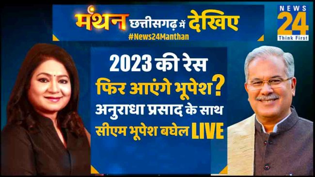 Manthan Chhattisgarh: छत्तीसगढ़ में नवंबर में विधानसभा चुनाव होने हैं। कुछ दिनों में आचार संहिता लागू हो जाएगी। ऐसे में न्यूज24 के लोकप्रिय कार्यक्रम मंथन का छत्तीसगढ़ की राजधानी रायपुर में आयोजन हो रहा है। इसमें राज्य के सीएम भूपेश बघेल ने शिरकत की। न्यूज24 की एडिटर इन चीफ अनुराधा प्रसाद ने सीएम बघेल से नक्सलवाद से लेकर आदिवासी संस्कृति, बघेल मॉडल से लेकर चुनावी एजेंडा पर सीधे सवाल किए। भूपेश बघेल ने नारा दिया है कि अबकी बार 75 पार। खबर के अंत में यूट्यूब लिंक है, जिस पर क्लिक कर आप पूरा वीडियो देख सकते हैं। उससे पहले पढ़िए सवाल और उनके जवाब…