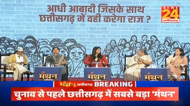 News24 Manthan: छत्तीसगढ़ में कहा जाता है कि आधी आबादी जिसके साथ… वही करता है राज? इस मुद्दे के साथ न्यूज24 की एंकर पूजा राठौर शर्मा ने ‘मंथन’ के पहले सेशन की शुरुआत की। मंच पर छत्तीसगढ़ महिला आयोग की अध्यक्ष डॉ. किरणमयी नायक, भाजपा विधायक रंजना साहू, जेसीसीजे की नेता ऋचा जोगी और आम आदमी पार्टी की प्रवक्ता प्रियंका शुक्ला मौजूद रहीं। किरणमयी नायक से आधी आबादी जिसके साथ… वही करेगा छत्तीसगढ़ में राज? पर चर्चा शुरू की गई।